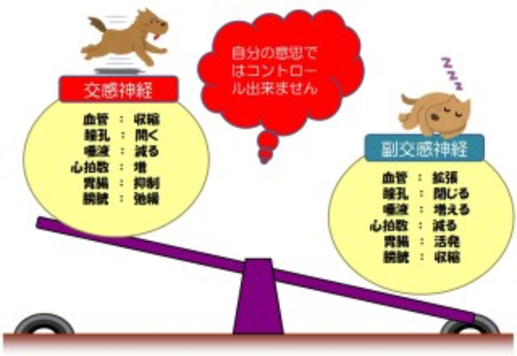 交感神経と副交感神経は常にバランス良く働いていて、精神状態や食事、時間帯や天気によって変わります。