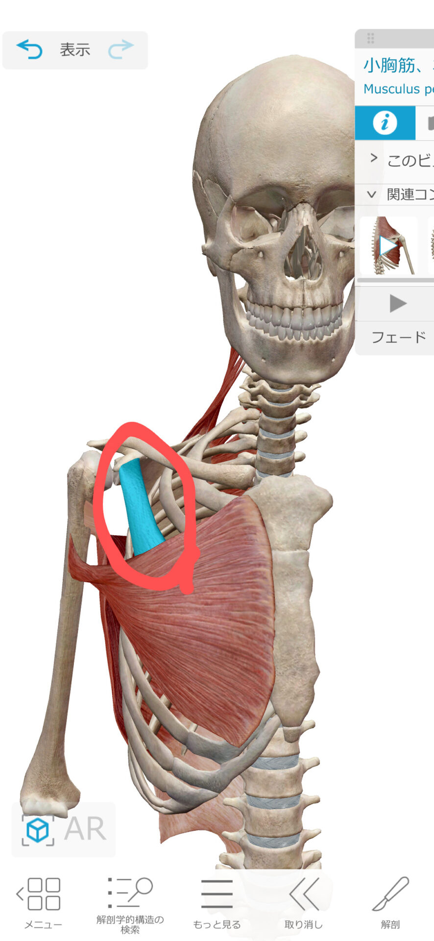 小胸筋は肩甲骨も前に引っ張る筋肉作用があります。他に深い吸気のために肋骨を定位置よりも上に上げさせる作用もあります。