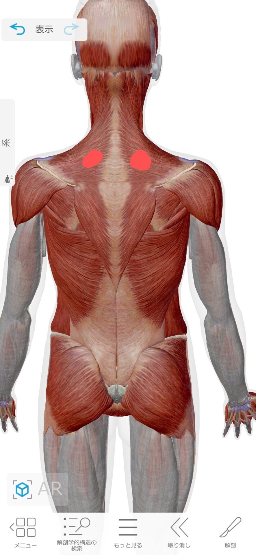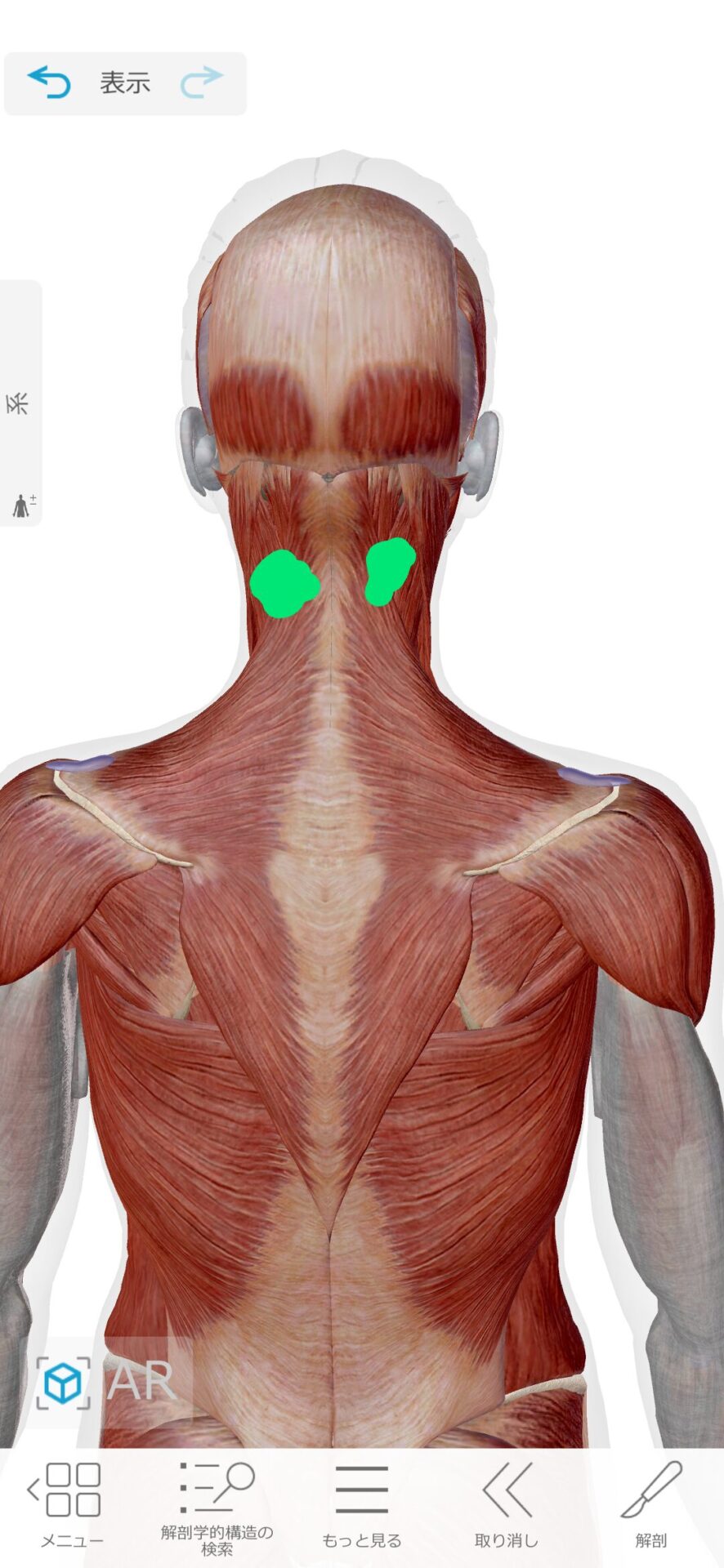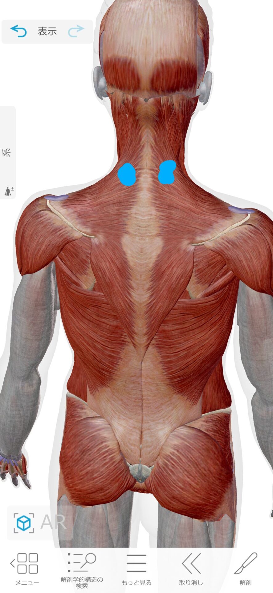 この3ヶ所を押しながら上を向いていくと徐々に天井と平行