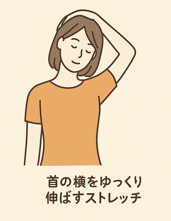 2.頭を横に軽く倒す(手で引っ張らない)。