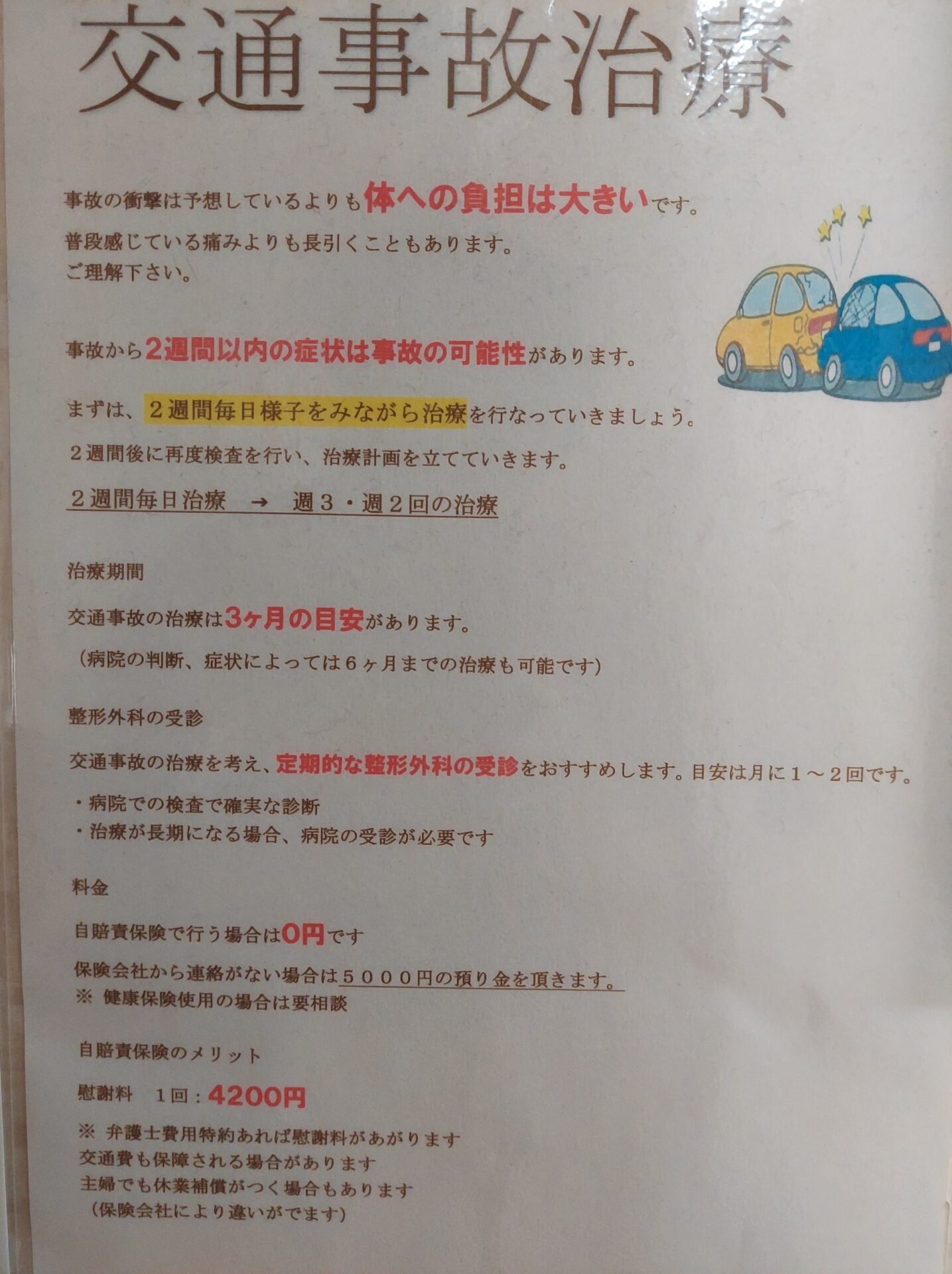 万が一交通事故にしまった場合はすぐに当院にご連絡ください!!