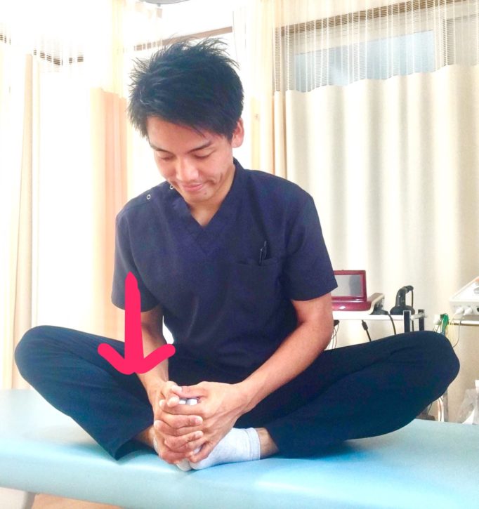 膝を曲げた状態で身体を後ろに倒していきます。
