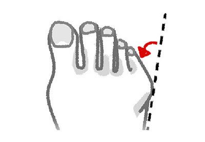 足の小指には、膝が外側に傾くのを防ぐ役割があります。小指が変形してストッパーが効かなくなると、膝と膝の間が開いてО脚になっていきます。そして、股関節も外側に開き骨盤にゆがみが生じます。