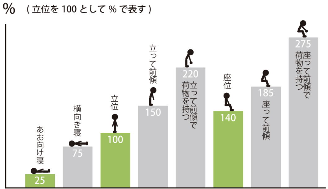 立っている状態より座っているほうが腰の負担が大きいんです。
