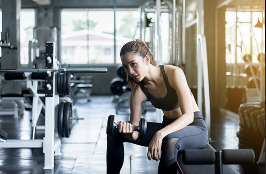 この画像ではスポーツジムでダンベルを持っている状態ですが、
