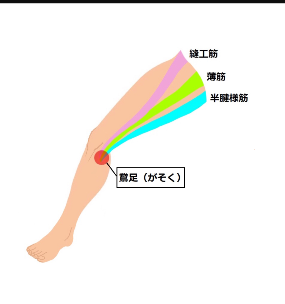 鵞足とは、縫工筋、薄筋、半腱様筋と言う太ももの内側の3つの筋肉のことを言います。