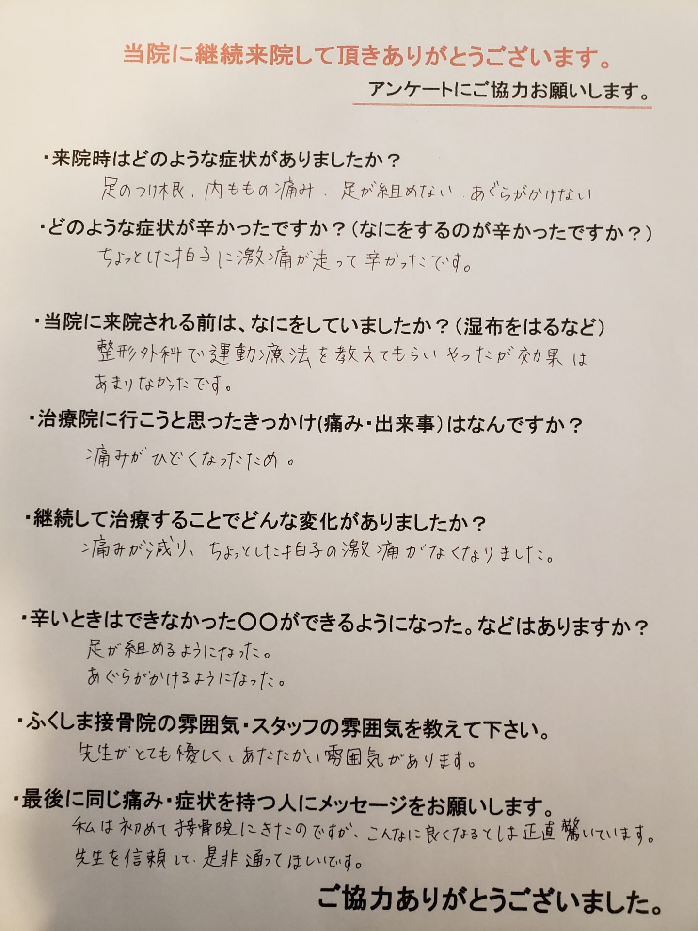 Q最後に同じ痛み・症状を持つ人にメッセージをお願いします。