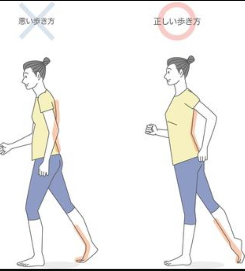 ※正しい歩き方はかかとから着地し後ろの足の親指の先を使って蹴り出すように歩くのですが意識しすぎると逆に負荷をかけてしまい疲れやすくなってしまうこともあります!