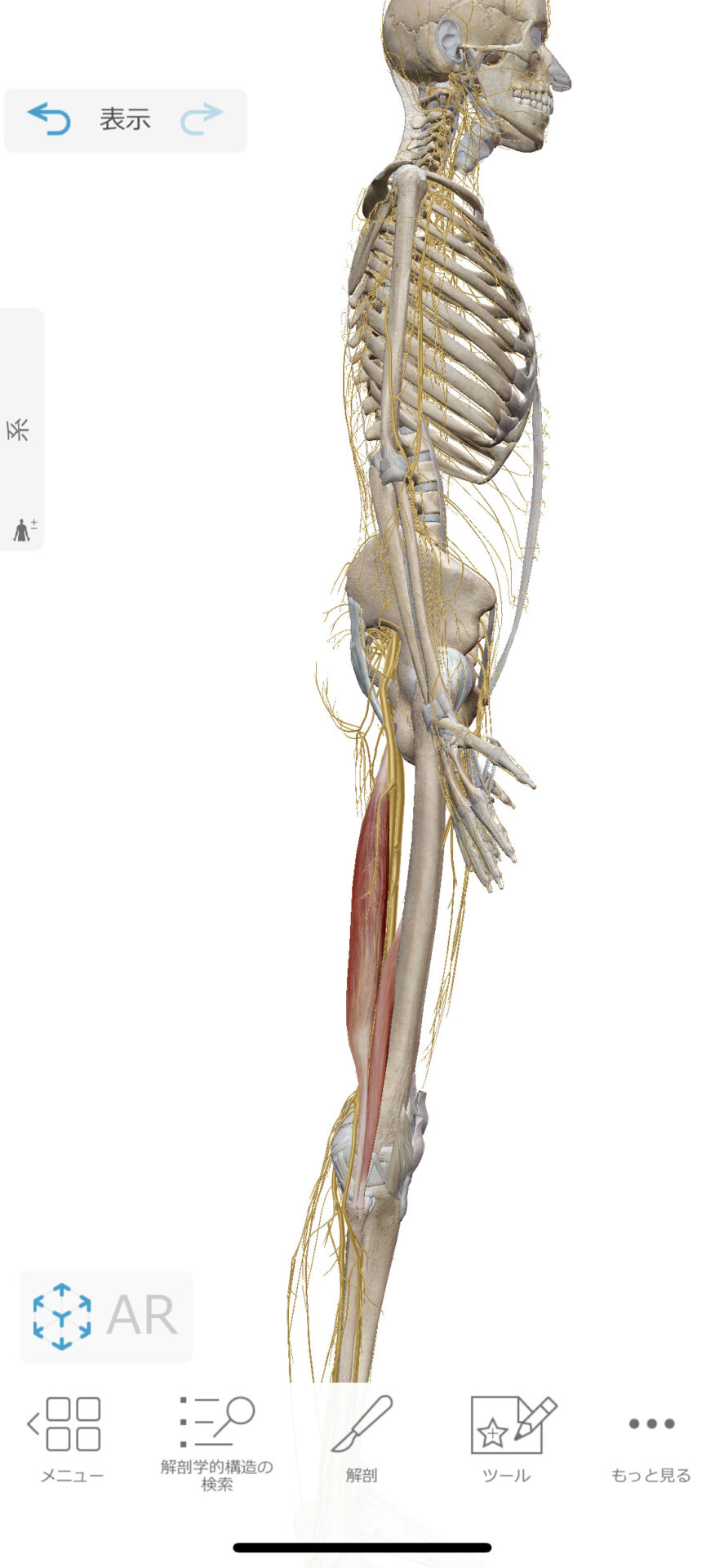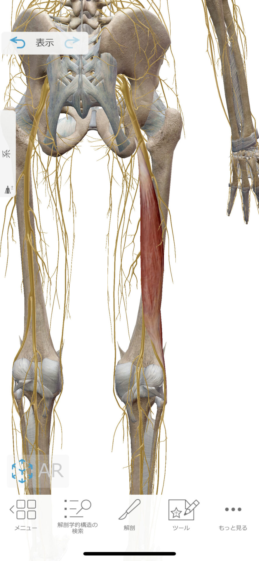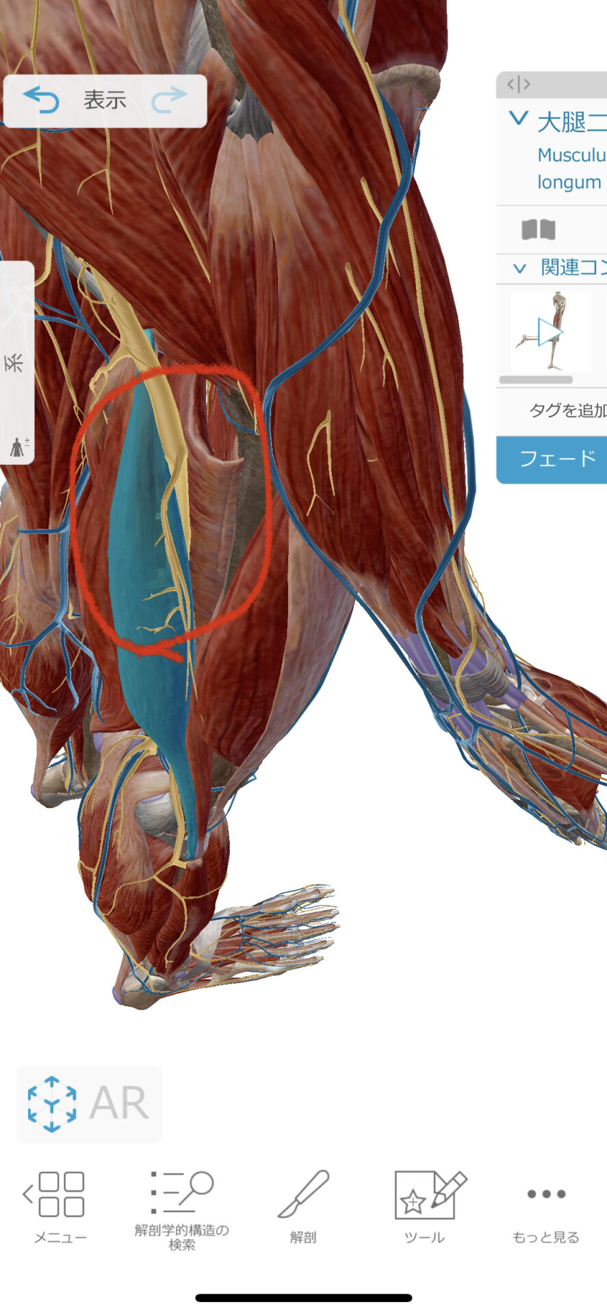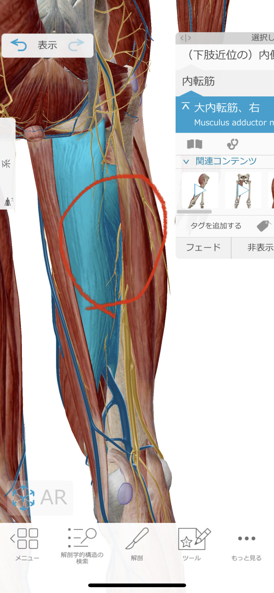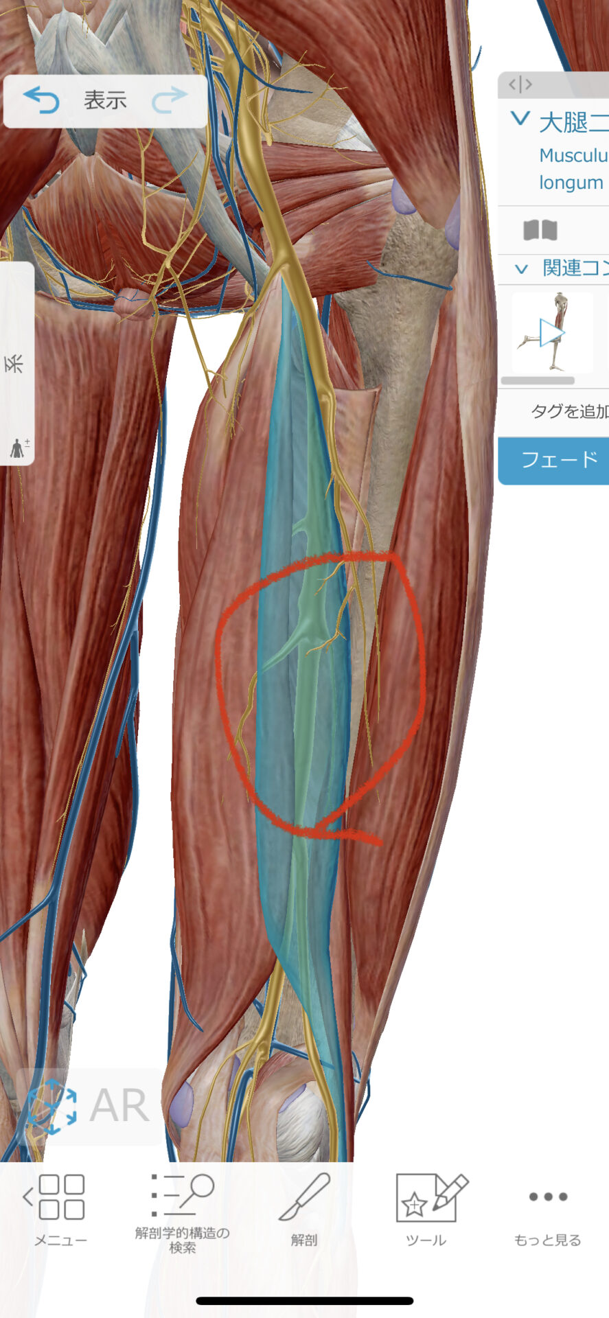 少しわかりにくいかもしれませんが、大内転筋と大腿二頭筋の間に坐骨神経が走行しています。