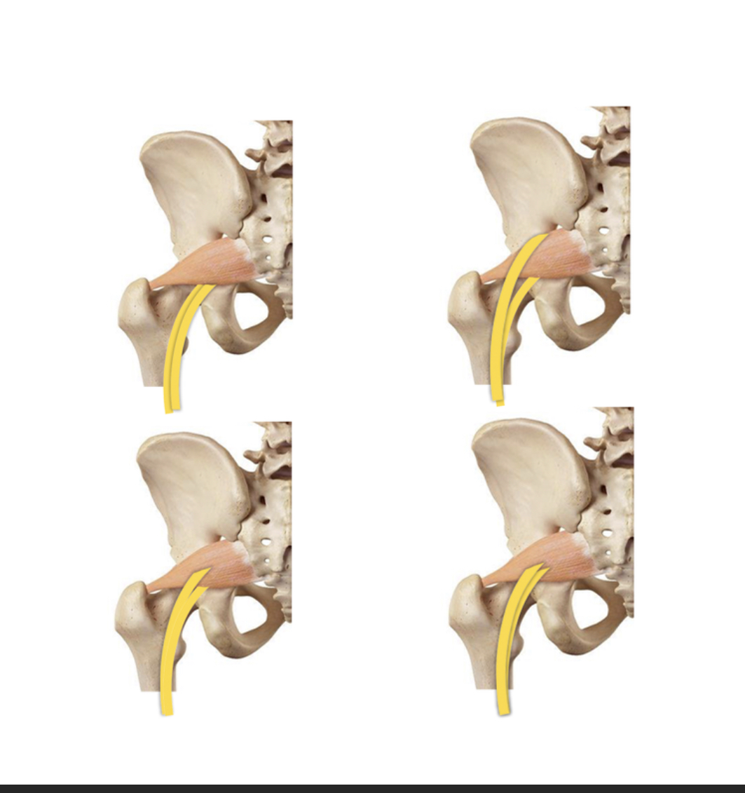 梨状筋の下縁の所で坐骨神経が絞扼されやすくなってます。