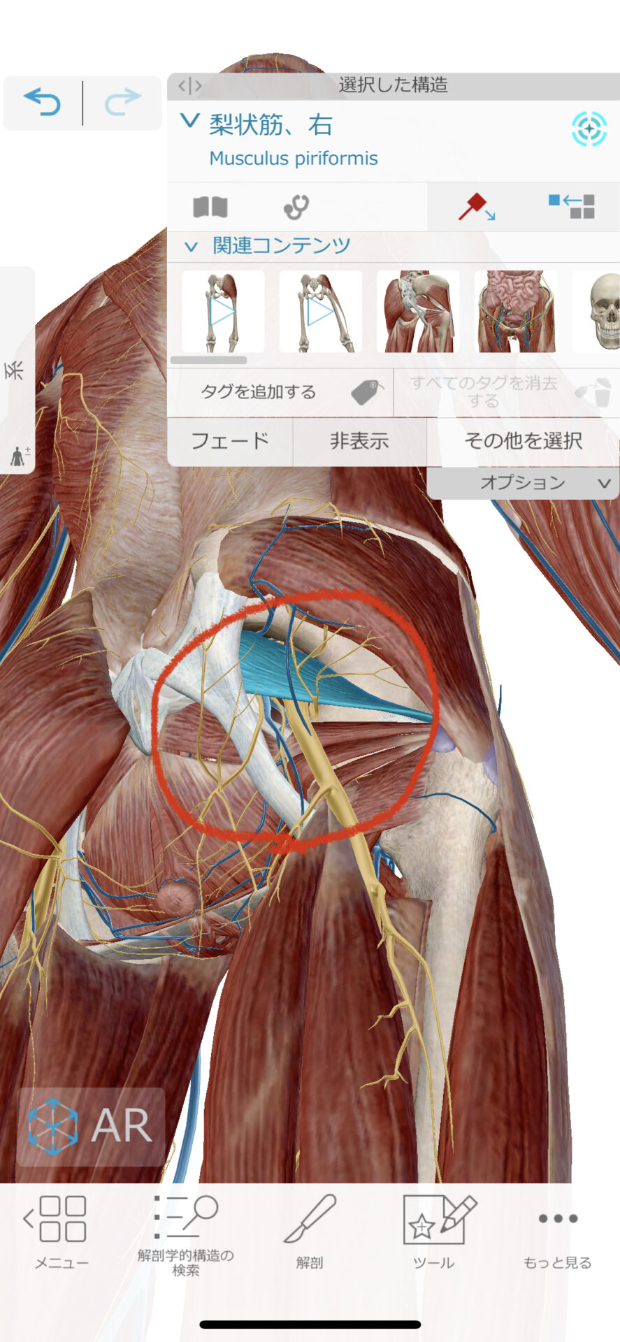 また、梨状筋の中を坐骨神経が走行している場合もあります。